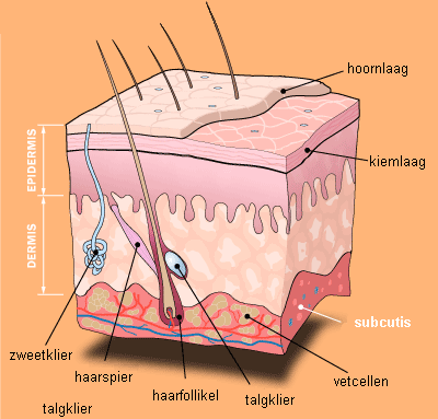 De opperhuid heeft 2 lagen: de hoornlaag en de kiemlaag.